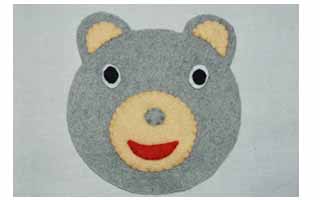 内耳、目(白→黒)、口の周り→鼻、口 を留めます。