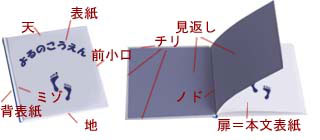 製本は、本文(ホンモン)部分と表紙部分に分けて考えると、分かりやすいと思います。