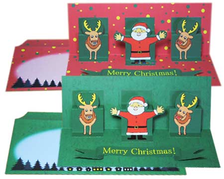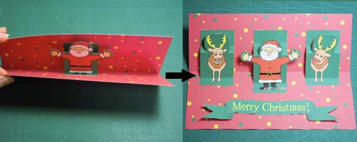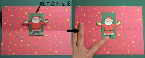 サンタの折り目を平らに延ばして台紙の折り線に垂直になっているか確認します。(写真右)