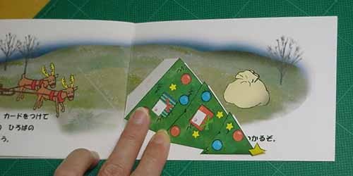 本を閉じて軽く押さえ、開くと仕掛けが立ち上がります。