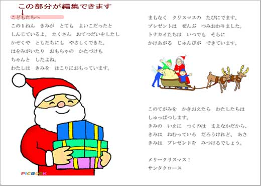 子どもさんの名前を入れてください。サンタさんが語りかけます。